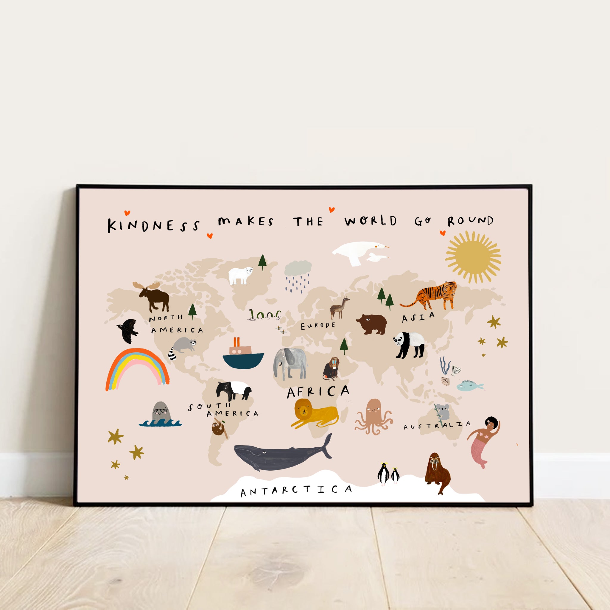 Kindness makes the world go round map Art Print โ Yaya Studio