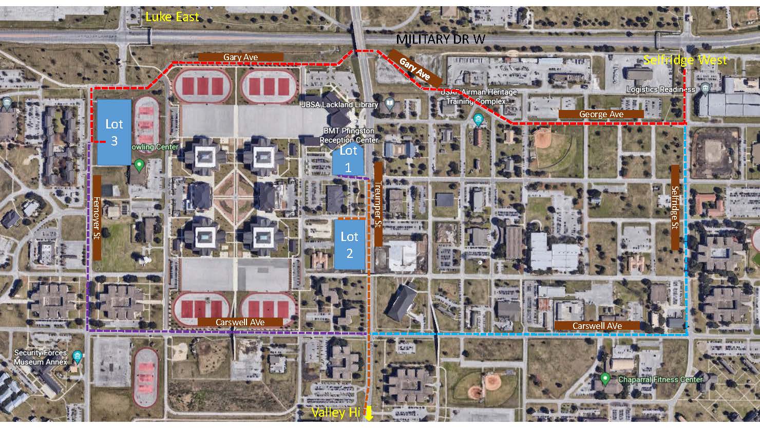 Lackland Af Base Map – San Antonio Police Department (SAPD) officials say someone fired at Air Force security personnel at the gate of Chapman Training Annex, located along Medina Base Road, at around 2:15 a.m. That service . Security guards at the entrance to a training annex at Joint Base San Antonio-Lackland twice came under fire early Saturday morning from unknown assailants. The second ambush sparked a brief .
